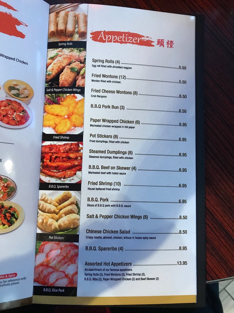 Includes soup: gourmet wonton soup; appetizers: egg roll, fried wontons & paper wrapped chicken; entrée: select one entrée per person.